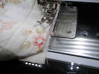 Hand sew the binding to the back just a thread width beyond the stitching.